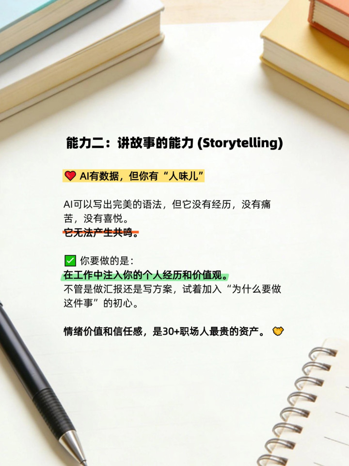 Storytelling(故事力):数据是冰冷的,但故事有温度。用你的经历去打动人,建立信任。