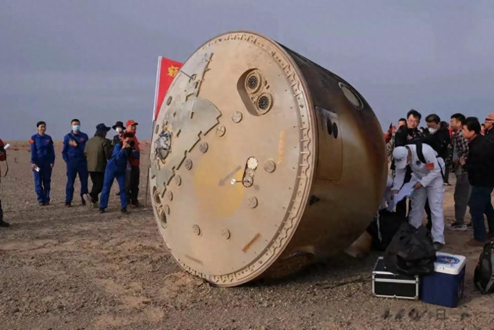 这艘飞船回来时没人迎接,也没掌,它静静躺在戈壁滩上,像是完成了最后一班岗。