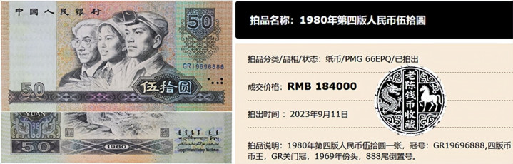 但“币王”里头还有更顶级的,之前就有一张1980年的50元,竟然拍出了18.4万元!