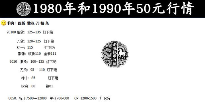 不过,要说目前市场上已经稳稳升值,能公开交易的,还得是已经在2018年退市的四版1980年50元,现在藏友都称它为“8050”。