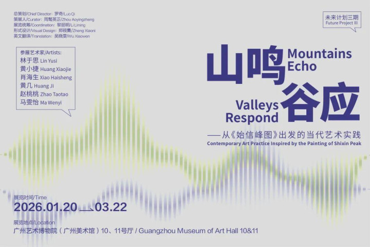 作为未来计划的第三期,本次展览以“山鸣谷应”为主题,邀请了六位年轻当代艺术家——林于思、黄小捷、肖海生、黄幾、赵桃桃、马雯怡。他们试图通过个体创作与集体回应,展开传统艺术与当代艺术之间的关系探讨,呈现传统美学在当代语境下的转化与新生。