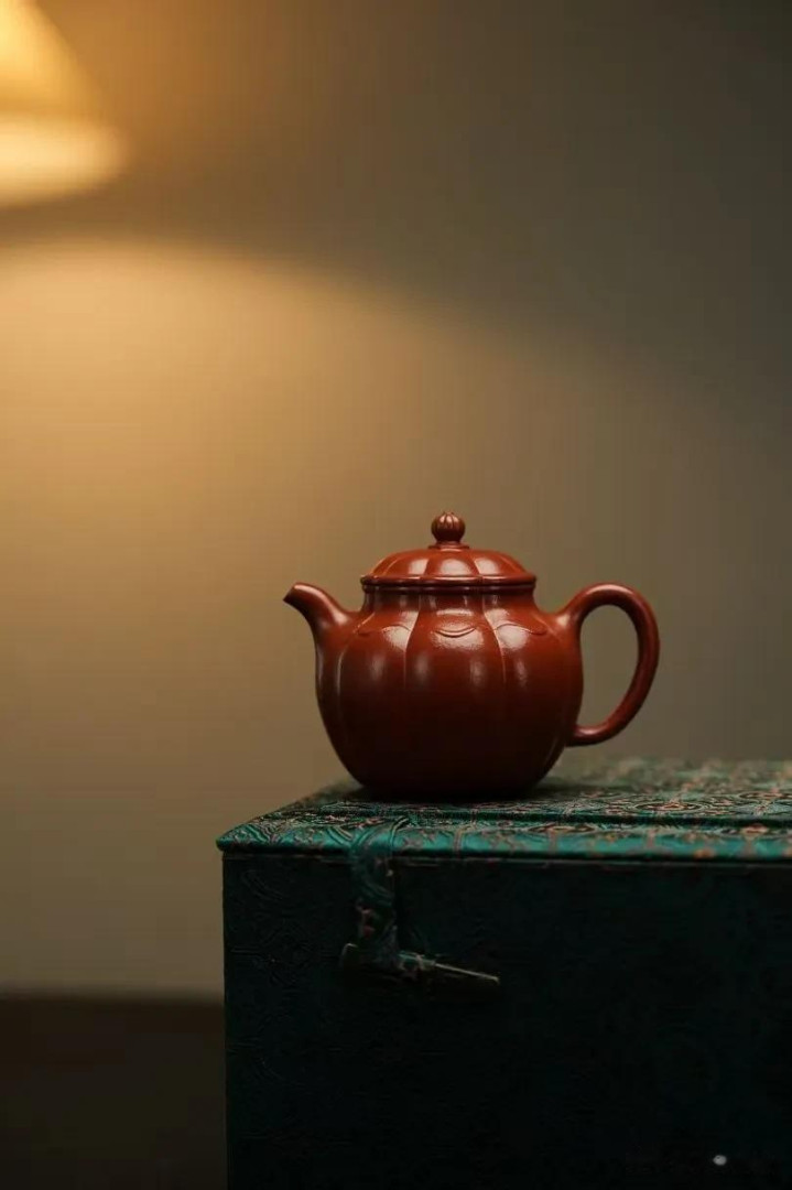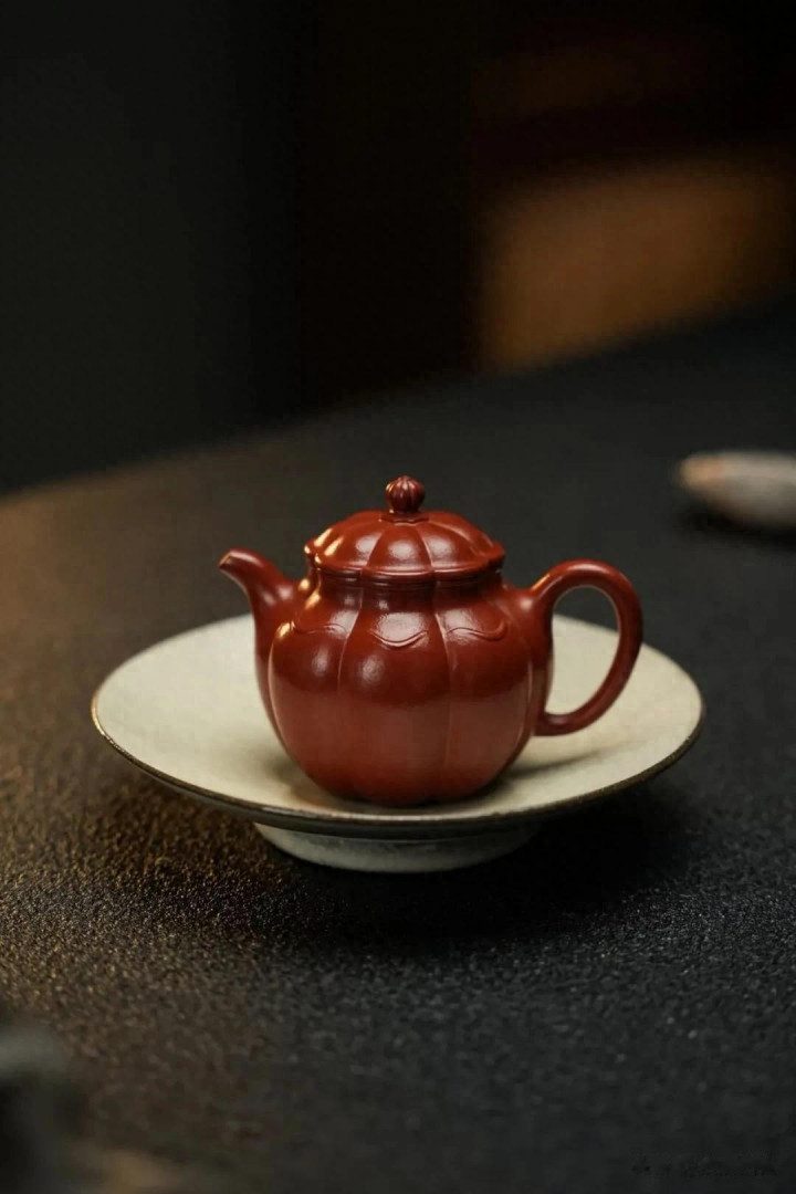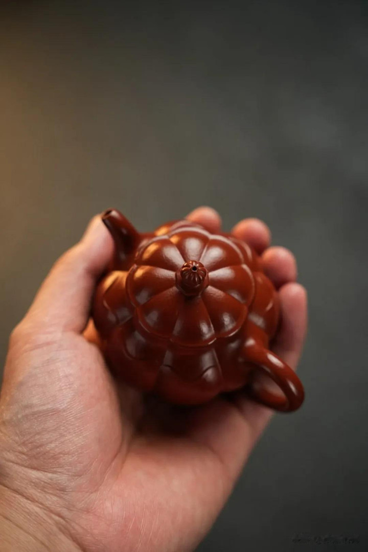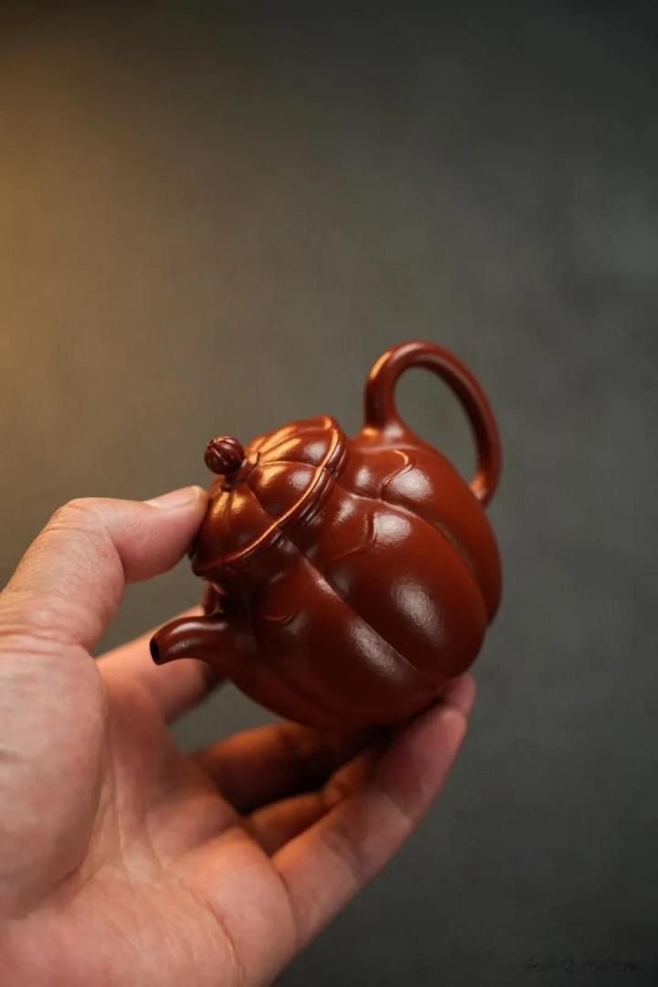这壶是堪堪一握的。130cc的容量,是经过岁月淘洗的智慧,不多不少,恰好是独处或二三知己对饮的量。它不追求筵席上的磅礴,只安于案头的一隅清静。一手盈握,饱满的壶腹贴合着掌心的弧度,朱泥温润的触感透过皮肤,传来一种踏实而亲切的暖意。这“一握”,是尺度,也是态度;它界定了一种专注而私密的品饮仪式,将外在的纷扰轻轻推开,只留下此刻的茶、器与我。