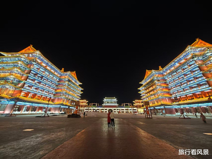 日落后,灯光渐次亮起,皇城夜景尤为动人。城墙之上与正安宫三层皆是俯瞰全景的绝佳机位。那一刻真的像一脚跌进《大明风华》的片场,整座城池复刻明清北京城的格局,一砖一瓦都透着古风,历史感扑面而来。