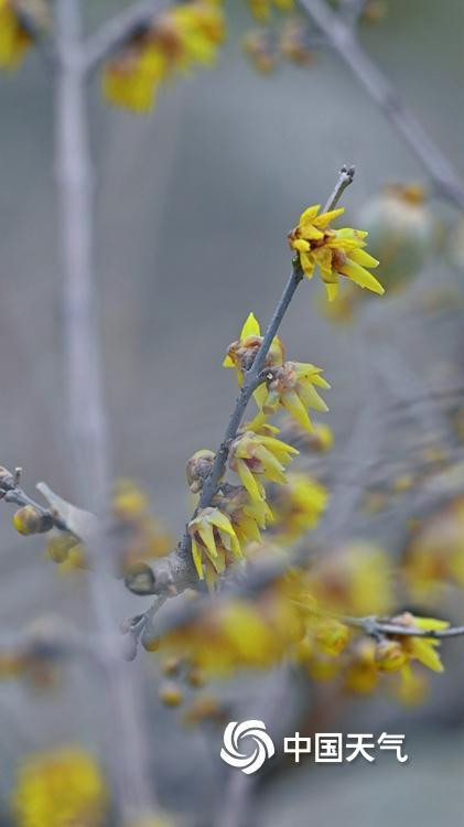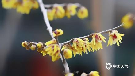 近日,北京北海公园的第一波蜡梅已经开放,鹅黄色的花朵俏丽枝头,为寒冬增添一抹亮丽色彩。(图/中国天气网王晓)
