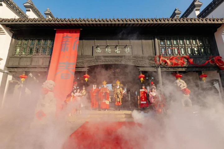 2026年春节,西塘古镇将以一场隆重的“开门礼宾”仪式迎接八方来客。上午9点30分,伴随着鸣锣打鼓声,礼官与“财神”“春官”将携手迎宾,向游客送上“财智双全”的新春祝福。“我们希望通过‘财智双全’的寓意,把新春的第一份好运送给大家。”工作人员表示。届时,身着传统服饰的财神爷将手持金元宝,向游客派发新年好礼,引来阵阵欢笑与合影打卡。