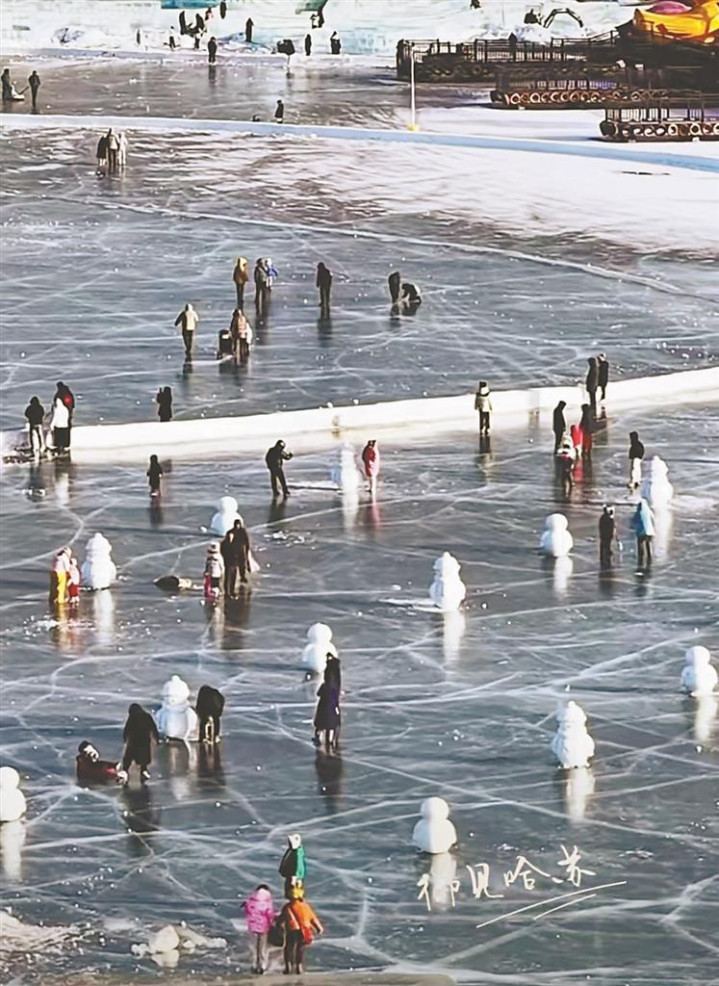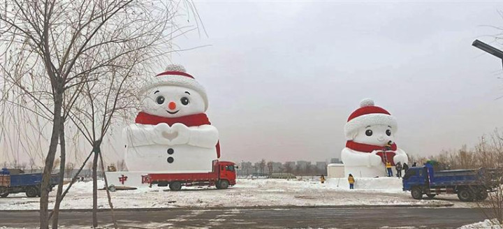 兰德湖面上的“庆宝”大雪人憨态可掬。