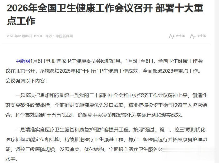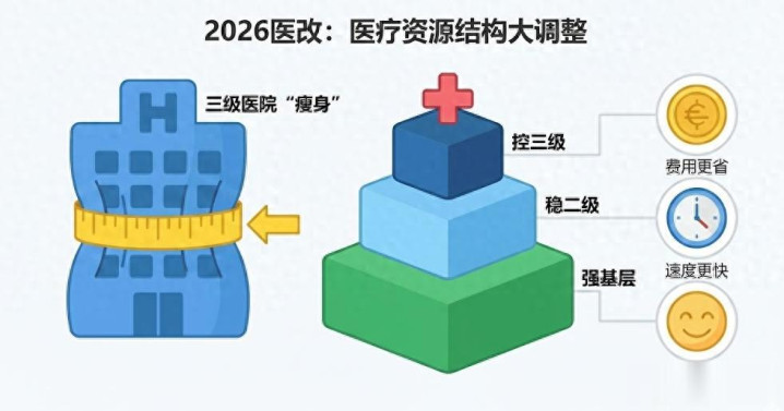 【导语】 最近,“三级医院限制床位”、“大医院要瘦身”的消息在各个群里传得沸沸扬扬。 特别是2026年全国卫生健康工作会议明确提出了“强基、稳二、控三”的原则,不少朋友开始担心:这是不是意味着以后去大医院看病更难了?床位缩减了,住院会不会更排不上队?