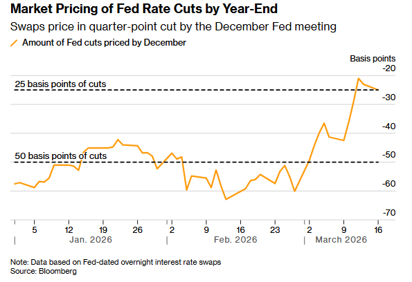 现在,期货商场的交游员们仅瞻望好意思联储本年年底前将降息约25个基点,而2月底时商场订价的预期曾至少为两次25个基点的降息。