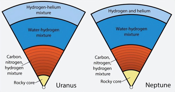 这个经典模型认为,像天王星和海王星这样的冰巨星,内部应该是界限清晰的三明治结构:最外层是厚重的氢氦大气,中间是主要由水、氨和甲烷构成的超高压液态冰幔,最中心则是一个相对独立的岩石金属核心。
