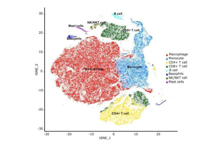 借助单细胞RNA测序技术,研究团队还追踪了感染初期巨噬细胞(吞噬肺部Mtb的大型免疫细胞)的活动。结果发现,在感染猴免疫缺陷病毒(SIV,非人灵长类HIV对应病毒)2周后,巨噬细胞功能(通过基因的激活或抑制来确定)就发生了变化,且在完成治疗方案后也未恢复。