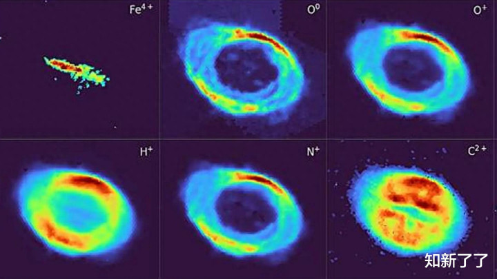 这条"铁条"精准嵌于星云内椭圆环中,且在其他波长图像中没有对应结构。更令人震惊的是铁含量——根据铁发射线亮度估算,其铁质量堪比火星。现有行星状星云形成模型难以解释如此精确形态的巨量铁聚集。研究作者特别指出:"该铁条中铁元素的耗损程度尚不明确",更增添其神秘色彩。