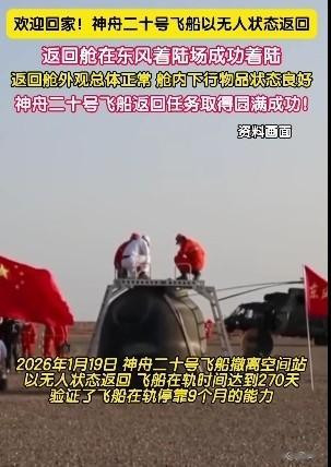2026年1月19日上午9时34分,东风着陆场见证了神舟二十号飞船的平稳回归。返回舱外观完好,舱内物品状态俱佳,这标志着长达270天的在轨任务画上了圆满句号。这次无人驾驶返回的成功,不仅仅是常规任务的收官,更是一次对中国空间站应急响应体系与故障处置能力的极限实战检验。