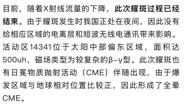 据中国气象局消息,北京时间1月19日02时09分左右,太阳活动区14341爆发X1.9级耀斑,这是太阳在2026年首次出现X级大耀斑。明、后两天地球可能出现地磁暴,我国北部有机会出现较为明显的极光,但不会对人体健康产生影响。