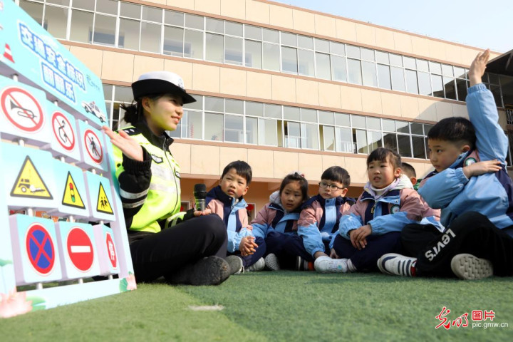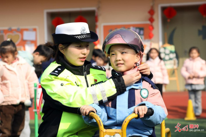 2026年3月9日,江苏省扬州市宝应县公安局交管大队民警来到辖区幼儿园,开展"祯祥看管一起童行"布道步履,通过上交通安全常识课、教正确佩带安全头盔、模拟体验安全骑行、参与交通安全游戏等道理面目,开云app登录让孩子们了解交通安全常识,增强安全强劲和自我保护才调。(沈冬兵摄/光明图片)