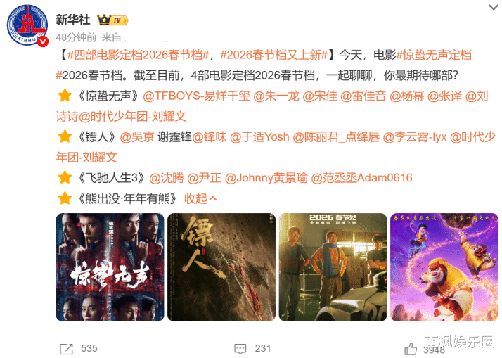 毕竟有沈腾的喜剧《飞驰人生3》保底,2026年的春节档大盘大概率不会凉。