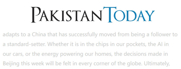 《当天巴基斯坦》网站近日刊文聚焦本年中国寰球两会时候的政府责任敷陈和“十五五”筹办提要草案,觉得从中不错看出,中国正在进行一次深刻转型,“这将重塑大家经济面目”。