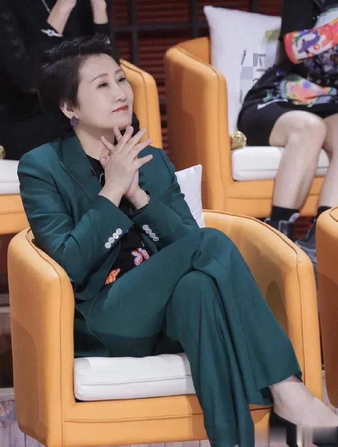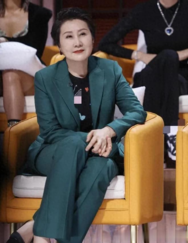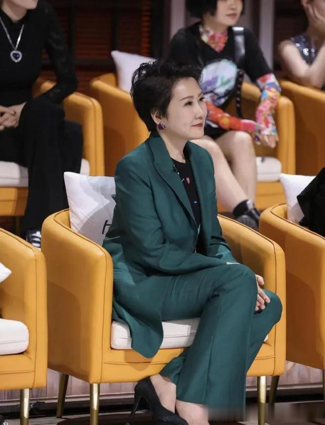 开云app登录 张凯丽把刘海梳起来年轻20岁! 穿绿色西装套装, 气质出众!