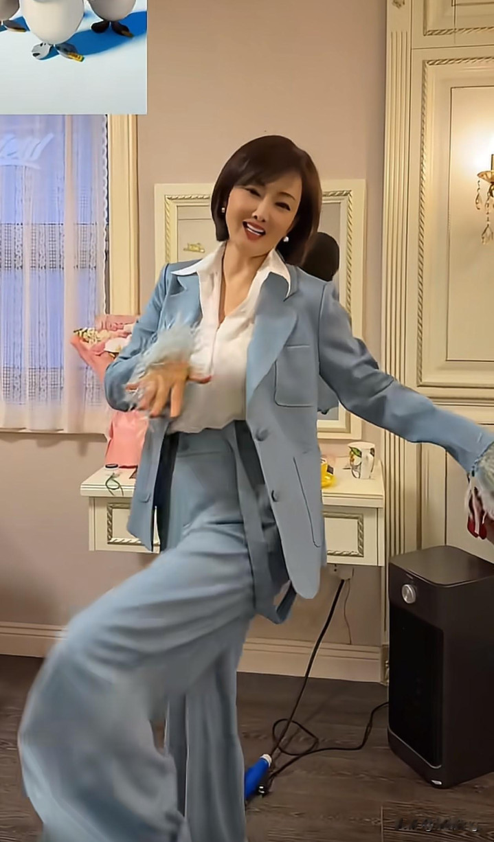 开云 53岁牛莉跳手势舞: 短发+衬衫+西服套装, 又美又飒, 越来越年轻