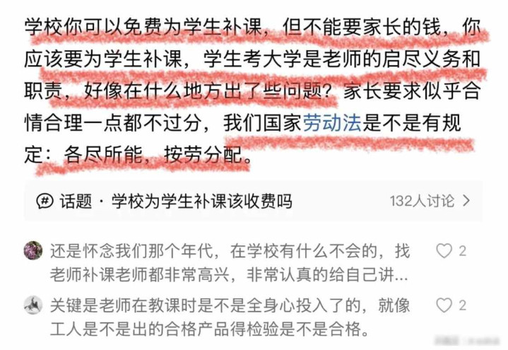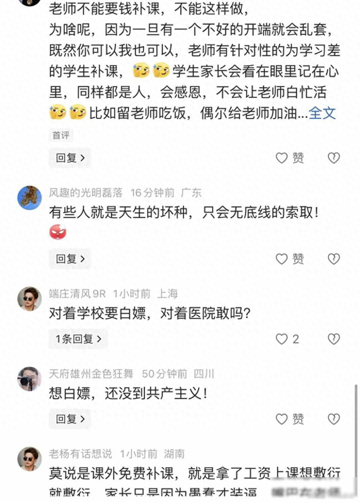 最近有段视频在抖音和微博上瞬息火起来,一个家长对着镜头问忠实,你拿着国度发的工资,怎么还收钱给学生补课,忠实没复兴,回身走掉了,视频传开以后,好多东谈主救助这位家长,说忠实应该免费帮手作念事,否则便是师德有问题。
