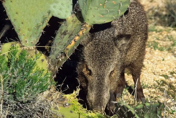 可草原西貒偏偏在这儿找到了生存密码——啃仙人掌。