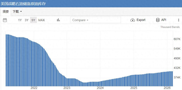 好意思国计策原油储备的总量在拜登期间从6.4亿桶缩小到自后的3亿桶傍边,尽管这两年补充了一些,总量还只好4.15亿桶。