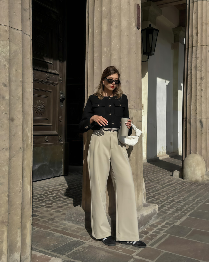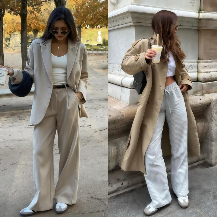 <一>“阔腿裤+德训鞋”这组搭配,凭什么春天一穿就出彩